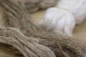 シルクとリネンの繊維(手前:リネン、奥:シルク)