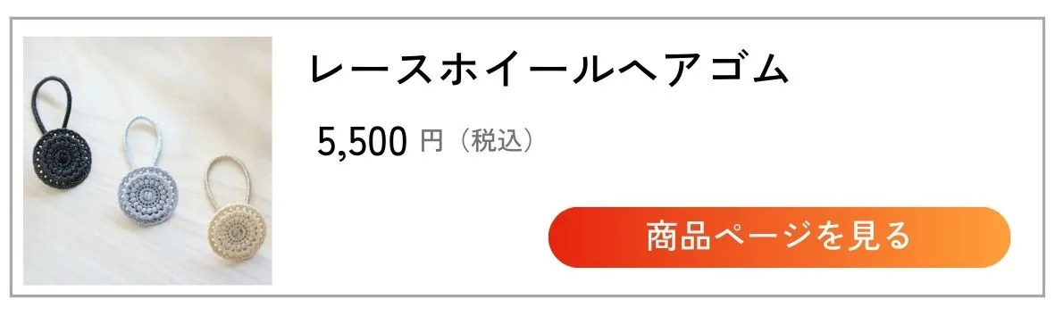 こちらもブランド初となるヘアアクセサリーが出来ました。ヘアゴムは以前よりお客様からのご要望が多かったアイテムです。