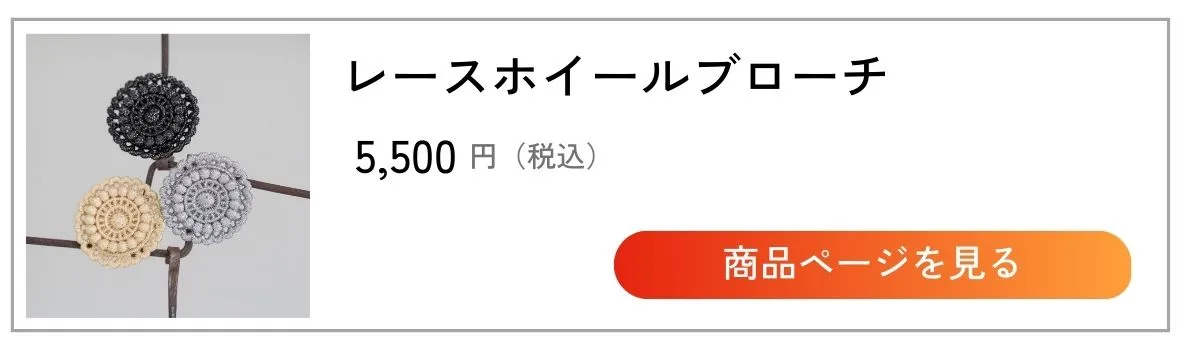 ラメ糸でできたレースホイールブローチはコサージュが苦手な方も着けやすい小ぶりなデザインです。
