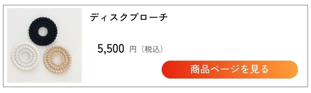 ディスクブローチはレースホイールよりも大ぶりな直径4.7㎝。インパクトがありつつ品よくまとめてくれます。