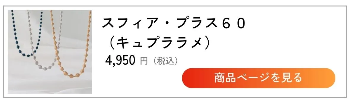 シルクシリーズの中でも一番長いタイプのネックレス。二重にしたり、先端を縛ったりとアレンジを楽しめます。