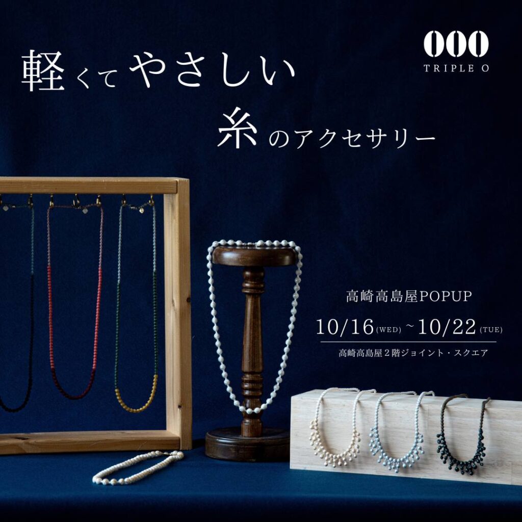 10/16(水)〜10/22(火)高崎高島屋にて開催のイベント「SANCHOKU DEPARTMENT STORE」に参加いたします! トリプル・オゥは2階ジョイントスクエアにて、新作やイベ... -