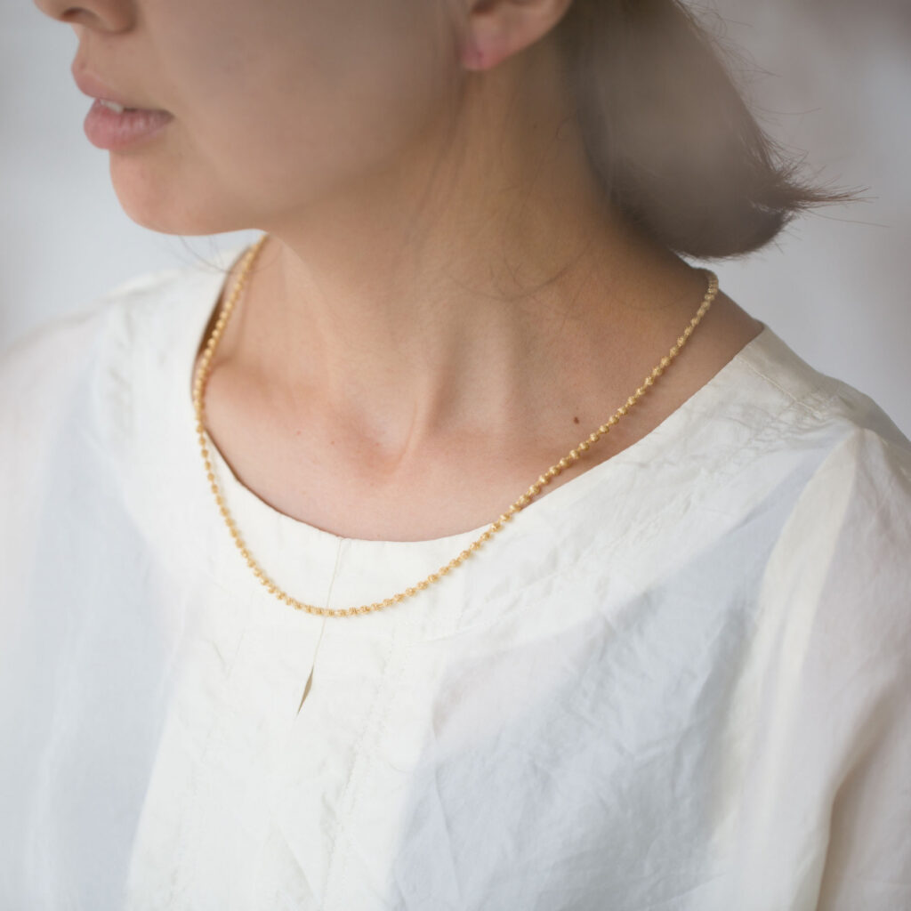 マイクロスフィアネックレスは、小粒のボールチェーンのような繊細で上品なデザインが魅力の人気アイテム。