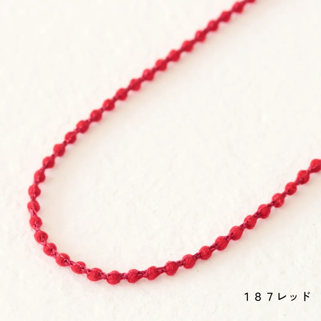 糸玉はキュプラ、間を通る糸はカラーラメで出来たキュプララメタイプ