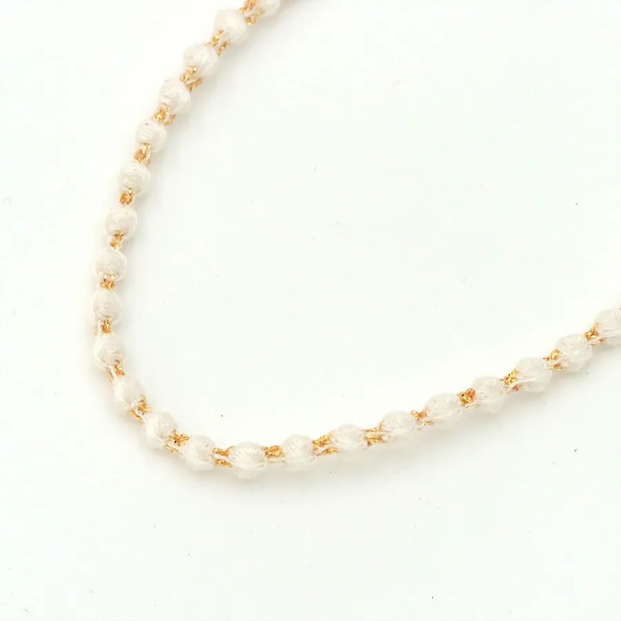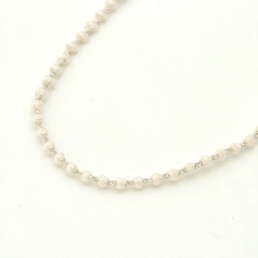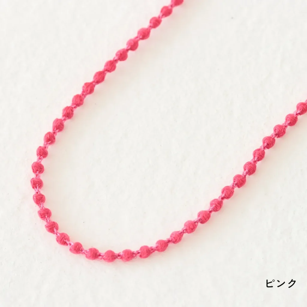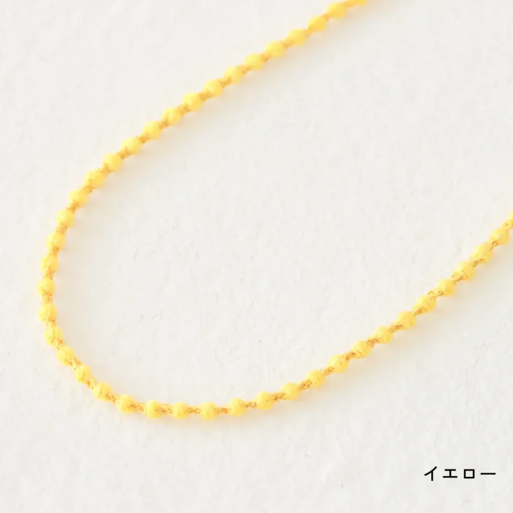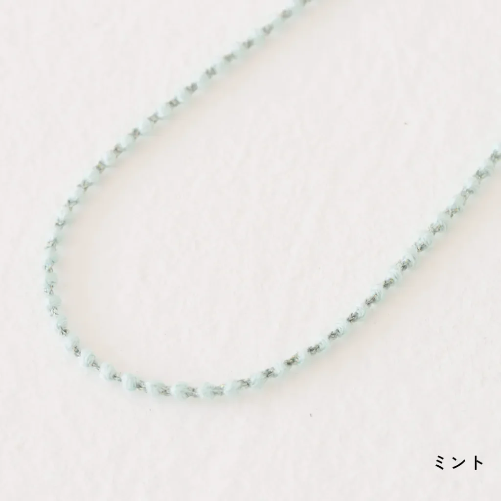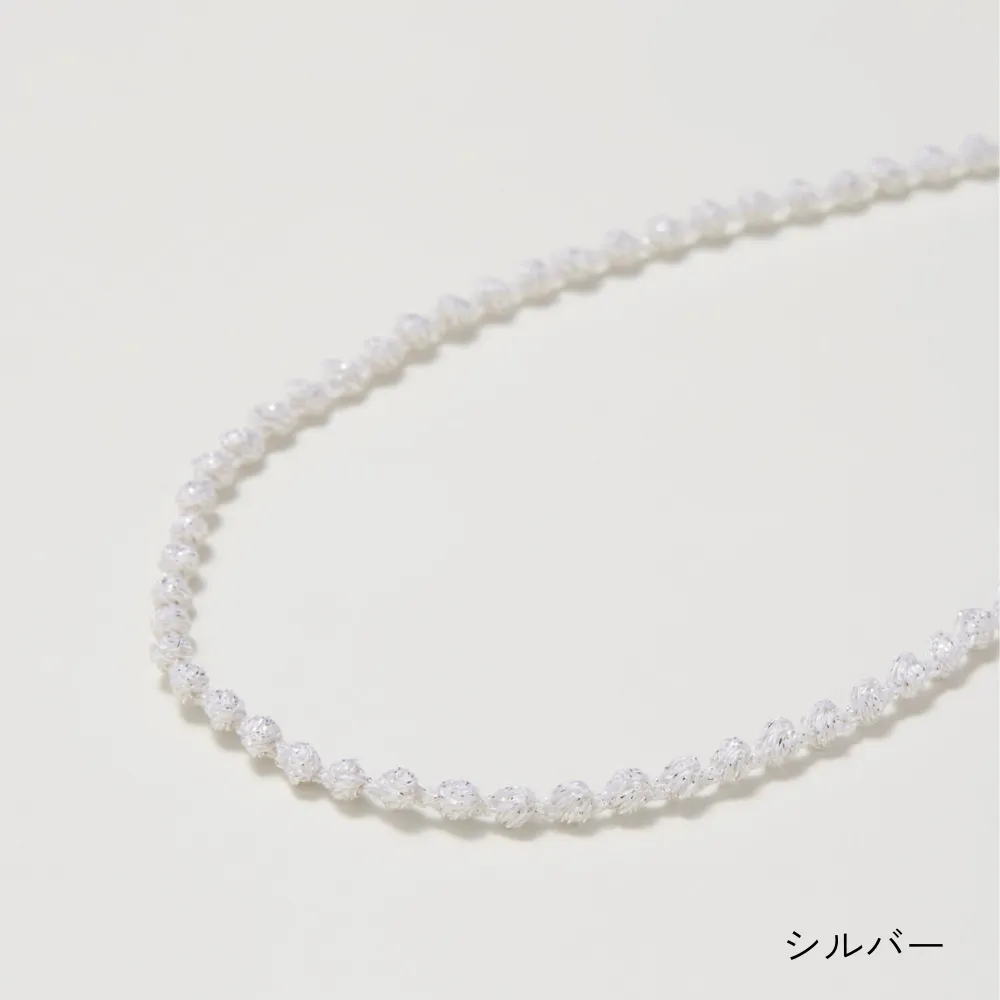 糸でできているため驚くほど軽く、シンプルでありながら存在感があり、カジュアルからフォーマルまで幅広く使える万能アクセサリーです。