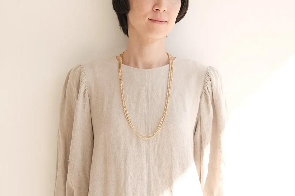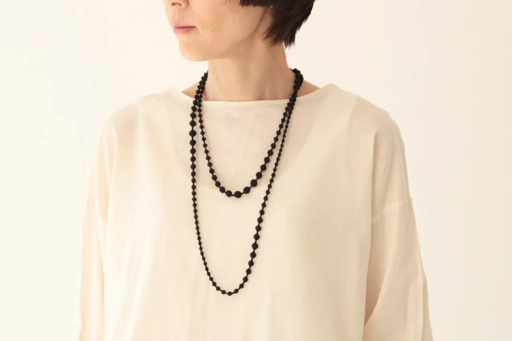 小さな糸珠が連なる、上品な3連ロングネックレス(75cm)。
